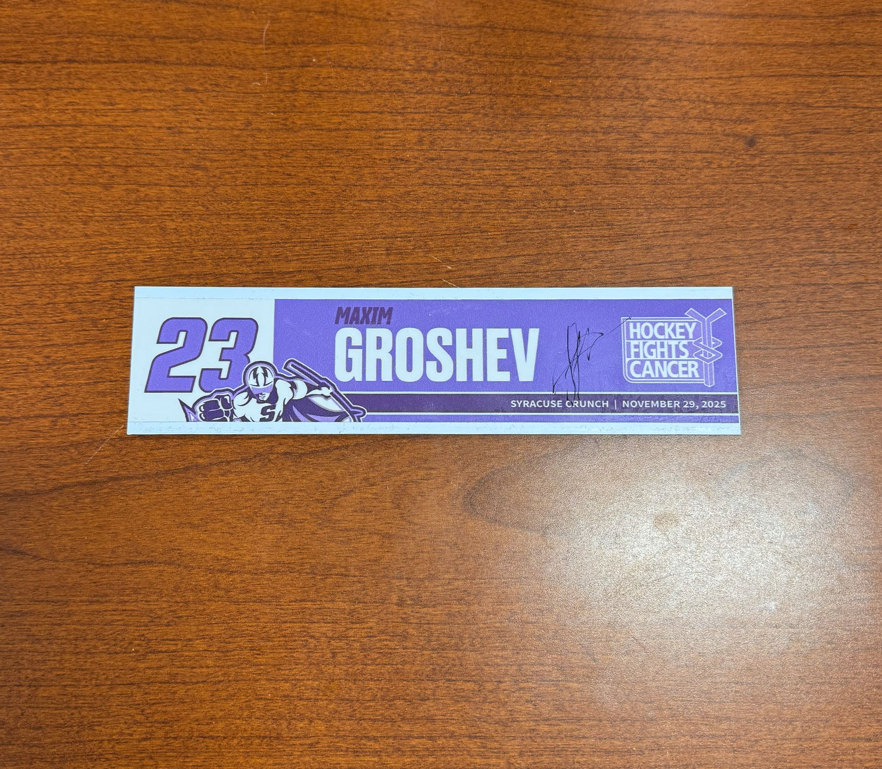 Signed #23 Maxim Groshev Hockey Fights Cancer Nameplate - November 29, 2025