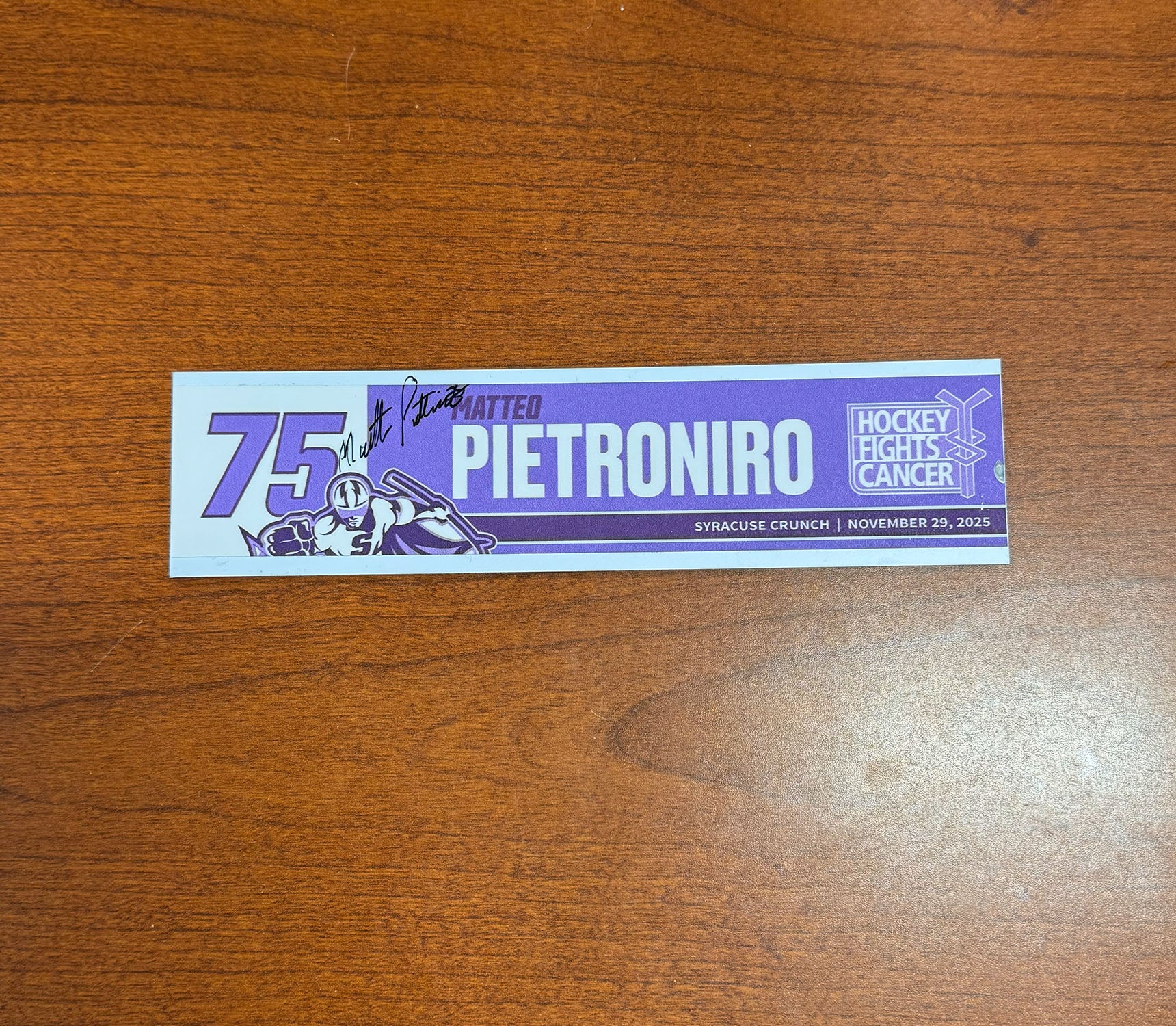 Signed #75 Matteo Pietroniro Hockey Fights Cancer Nameplate - November 29, 2025