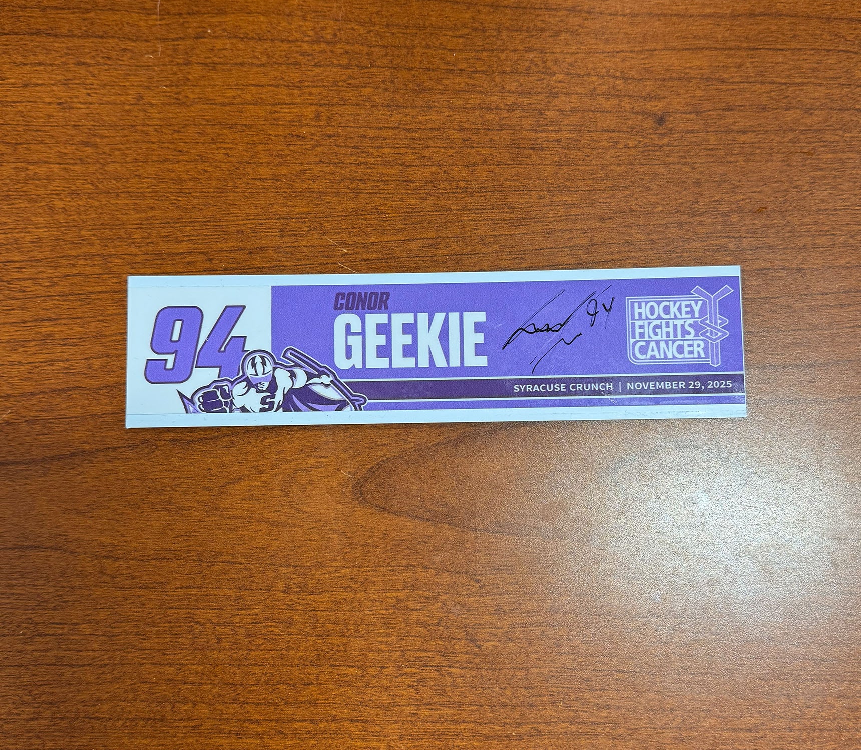 Signed #94 Conor Geekie Hockey Fights Cancer Nameplate - November 29, 2025