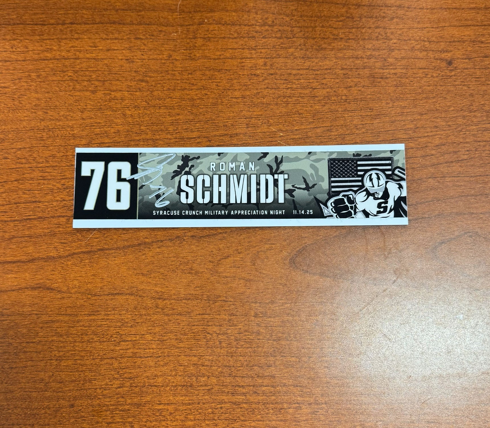 Signed #76 Roman Schmidt Military Appreciation Nameplate - November 14, 2025