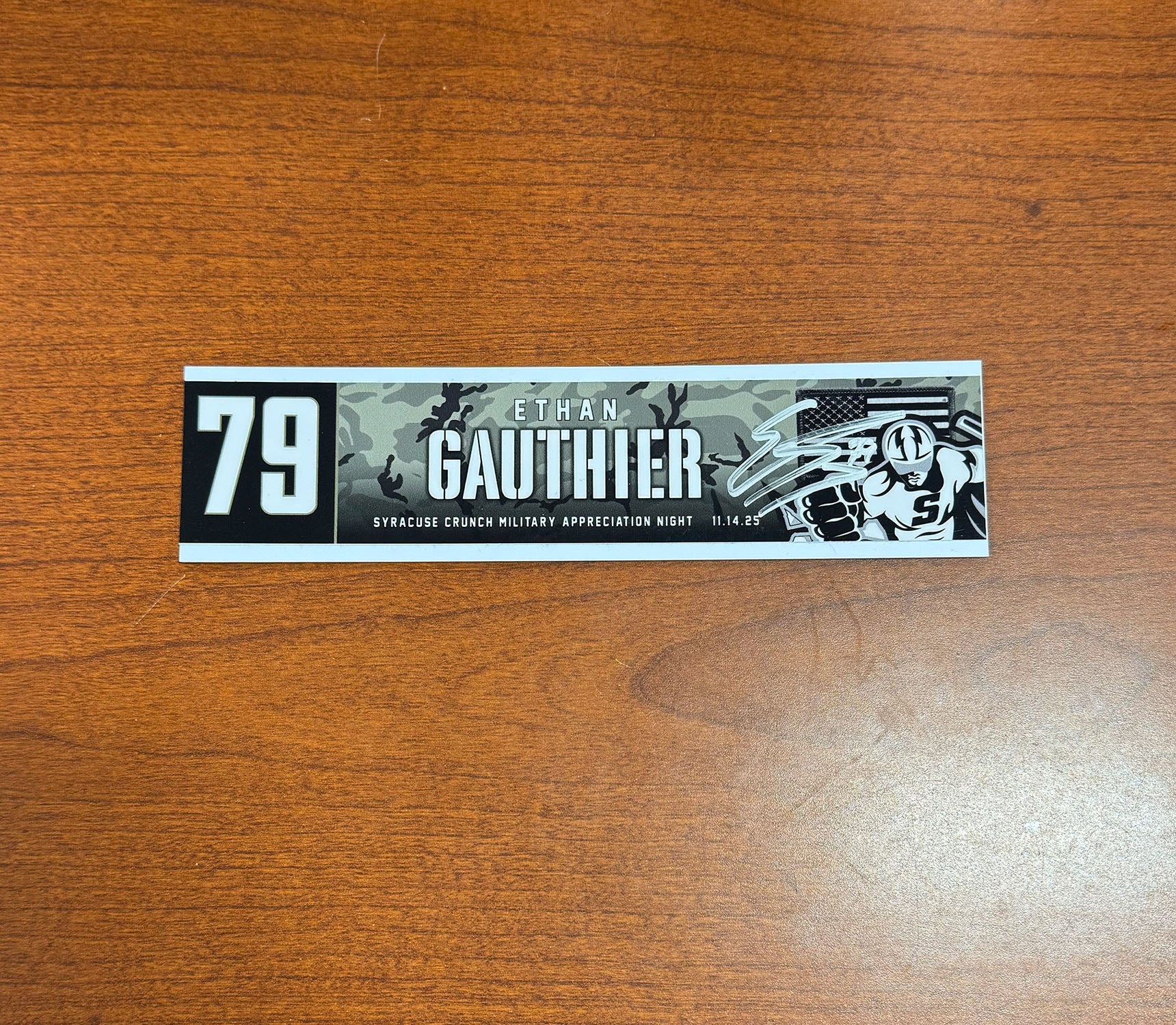 Signed #79 Ethan Gauthier Military Appreciation Nameplate - November 14, 2025