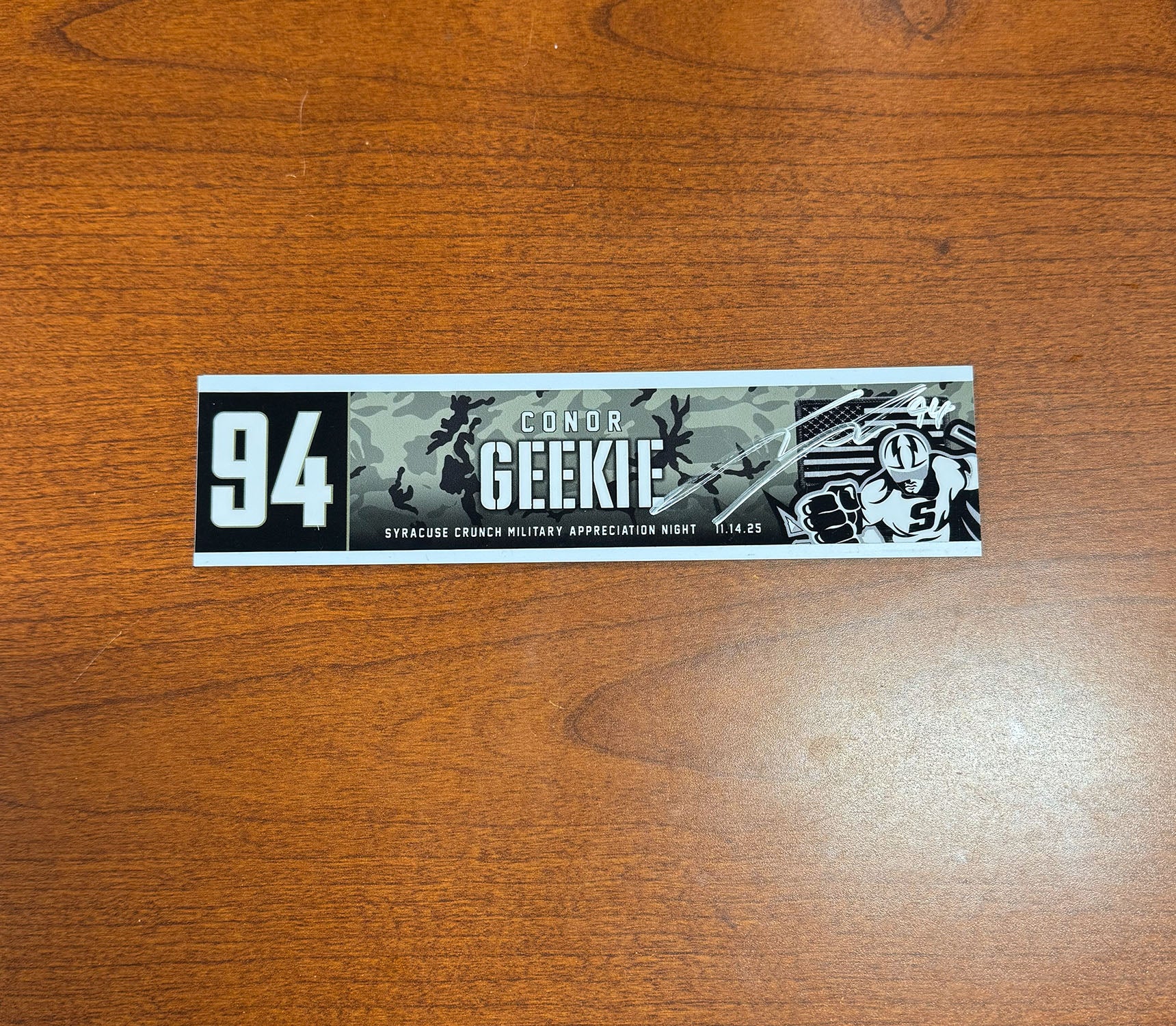 Signed #94 Conor Geekie Military Appreciation Nameplate - November 14, 2025