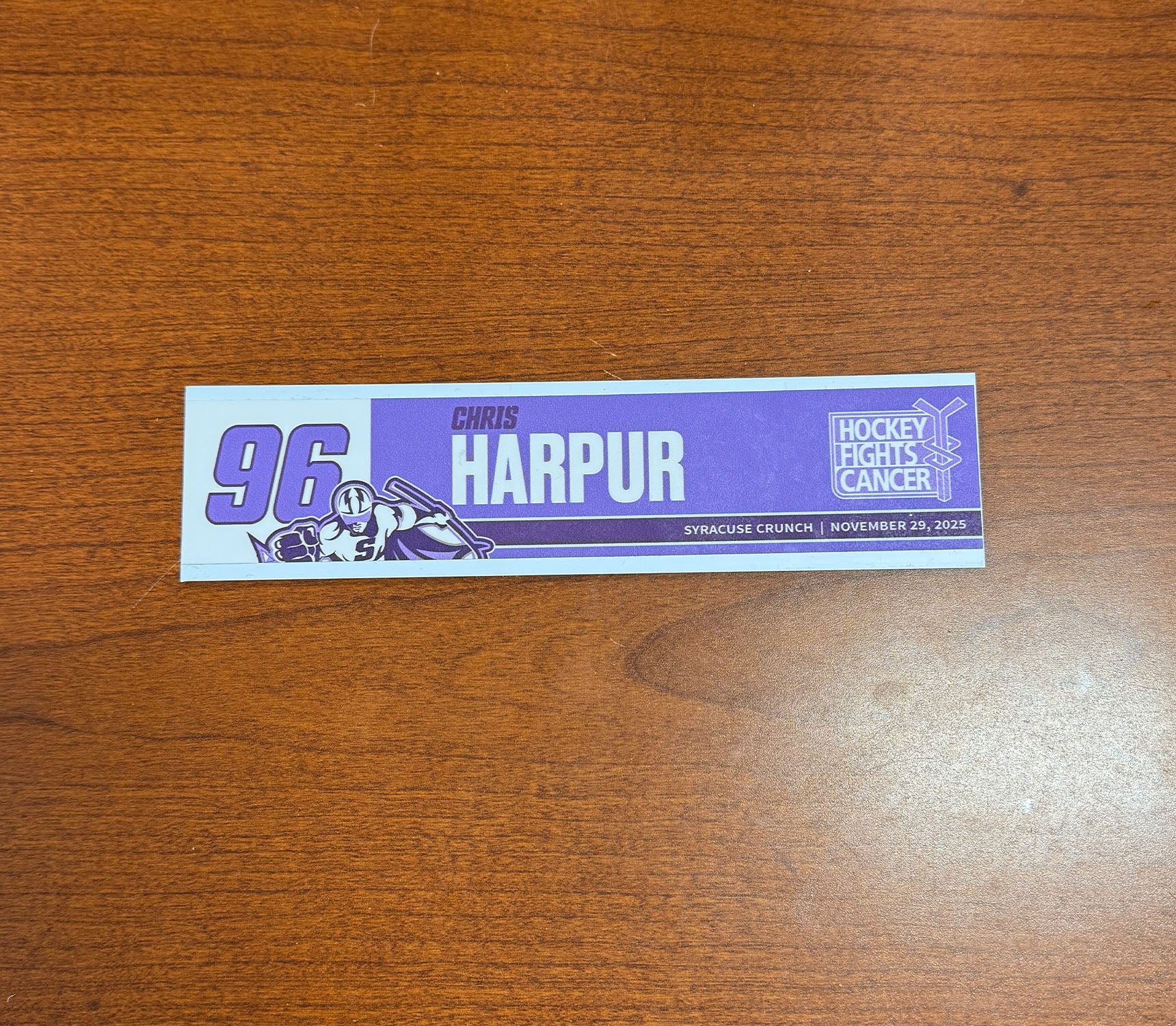 #96 Chris Harpur Hockey Fights Cancer Nameplate - November 29, 2025