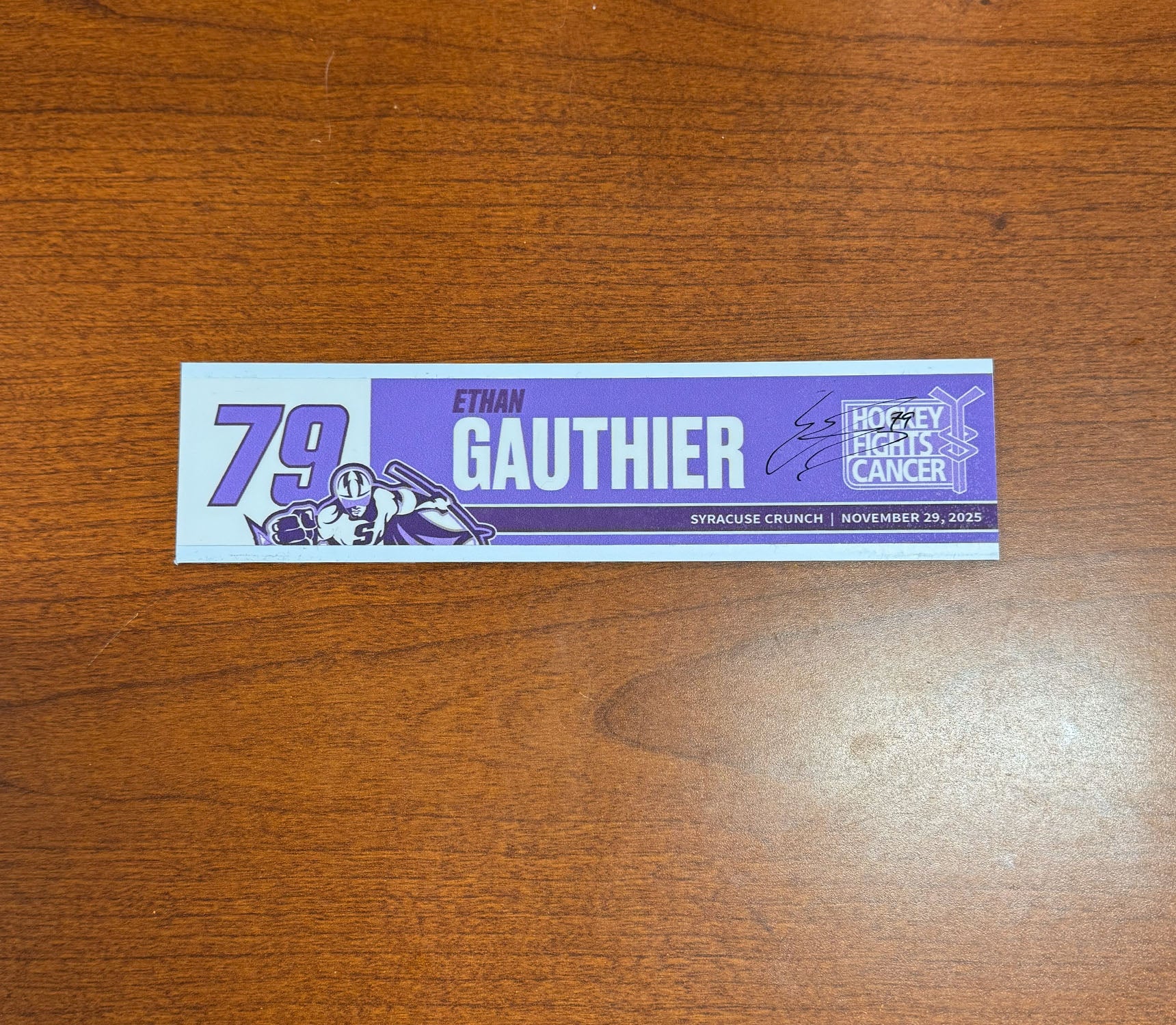 Signed #79 Ethan Gauthier Hockey Fights Cancer Nameplate - November 29, 2025